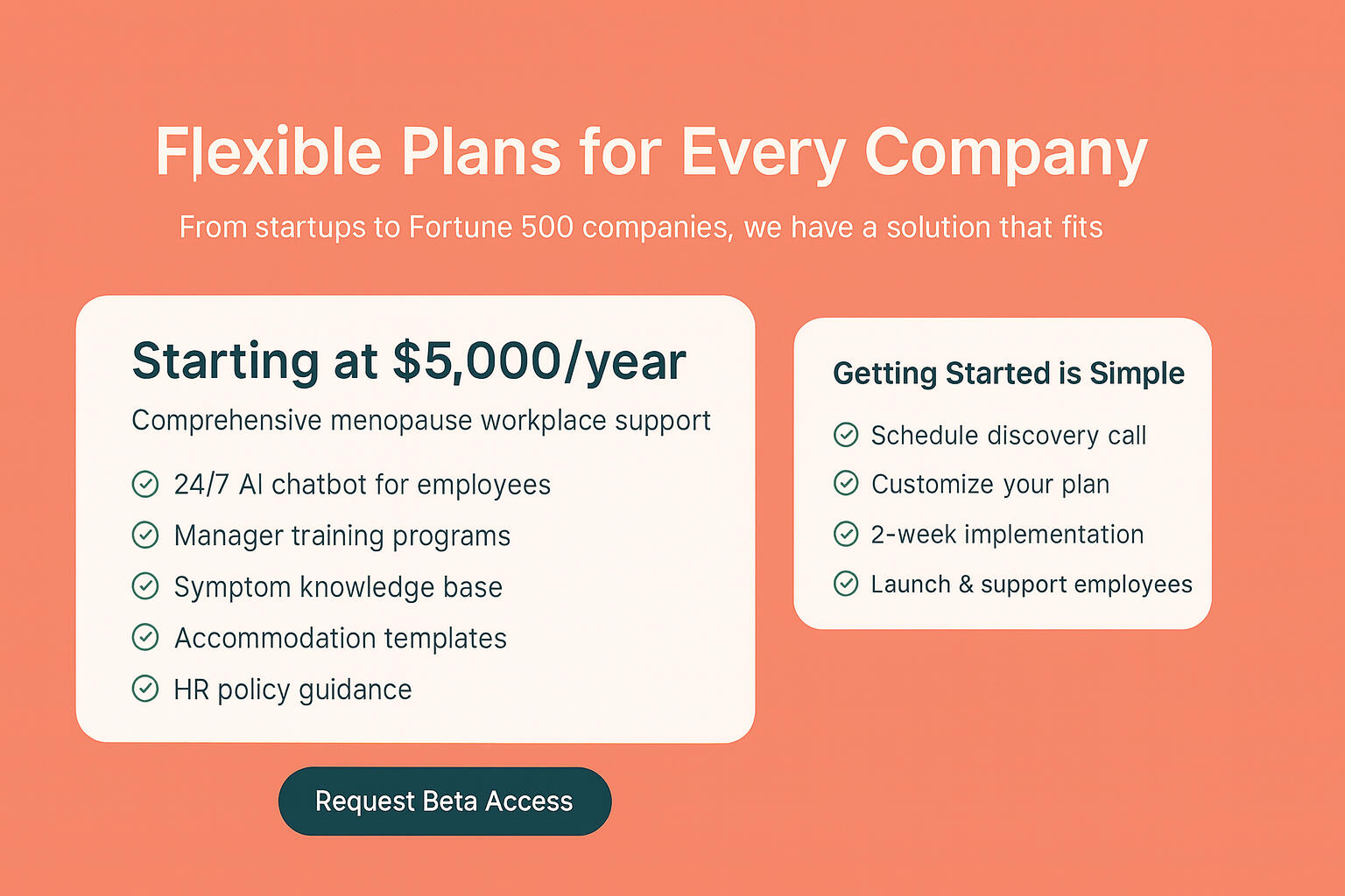 Launching January 2026. Limited beta partnerships available for forward-thinking companies ready to lead on menopause support.